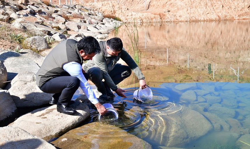 Kırşehir'de Aşıkpaşa Tabiat Parkı'ndaki gölete, 3 bin kırmızı benekli alabalık yavrusu salındı.