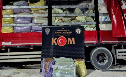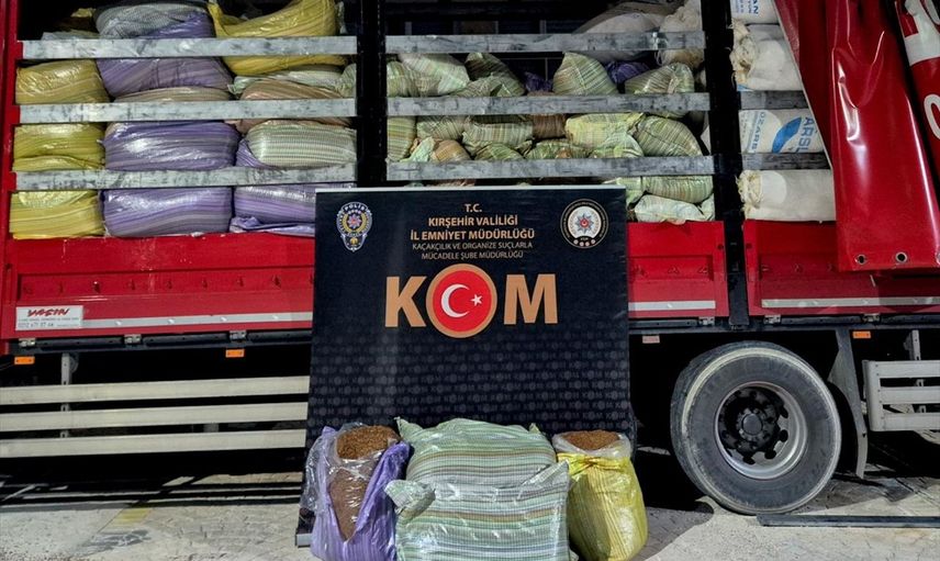 Kırşehir'de bir kamyonun kasasında 5 ton kıyılmış kaçak tütün ele geçirildi, sürücü gözaltına alındı.