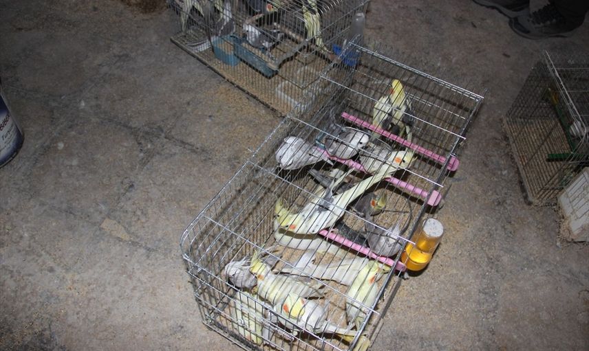 Polis ekiplerinin, Doğa Koruma ve Milli Parklar Şube Müdürlüğü ile birlikte gerçekleştirdiği aramada çeşitli kuş türleri ortaya çıkarıldı. Toplamda 36 sultan papağanı, 24 ispinoz, 4 java ispinozu, 1 sevda papağanı ve 1 şarkıcı papağanı ele geçirildi.
