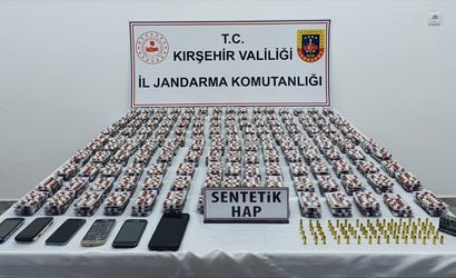 Kırşehir'de düzenlenen uyuşturucu operasyonunda, bir otomobilde 8 bin 330 sentetik hap, 75 tabanca fişeği ve 6 cep telefonu ele geçirildi, 1 zanlı gözaltına alındı.