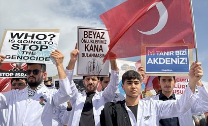 Kırşehir'de, İsrail'in Gazze'ye yönelik saldırılarına karşı bir yürüyüş gerçekleştirildi. Kırşehir Askerlik Şubesi önünde toplanan sağlık çalışanları, içinde doktor ve tıp fakültesi öğrencilerinin de bulunduğu bir grup olarak, Türk, Filistin ve Doğu Türkistan bayraklarıyla birlikte çeşitli döviz ve pankartlar eşliğinde Cacabey Meydanı'na kadar yürüdü.