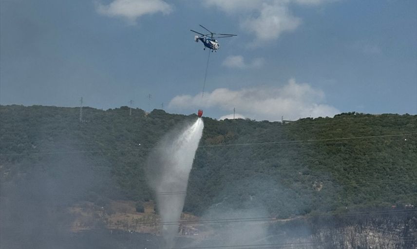 Kocaeli'nin Derince ilçesinde otluk alanda çıkan yangını söndürmek için havadan ve karadan çalışma başlatıldı.