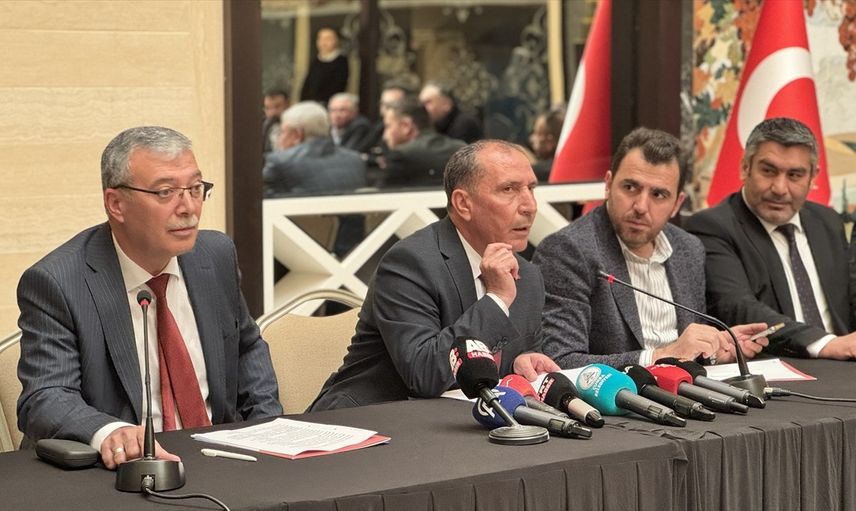 Konya'da Çumra Belediye Başkanı Mehmet Aydın (ortada) ve Emirgazi Belediye Başkanı Mesut Mertcan (solda), Yeniden Refah Partisi'nden istifa ettiğini açıkladı.