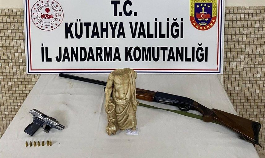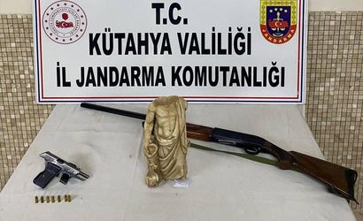 Kütahya'nın Emet ilçesinde, evinde Roma dönemine ait olduğu tahmin edilen heykel bulunan şüpheli gözaltına alındı. Şüphelinin adresine operasyon düzenleyen ekipler, yaptıkları aramada, Yunan mitolojisine göre tıp ve sağlık tanrısı Asklepios olduğu değerlendirilen mermer heykel, ruhsatsız tabanca ve tüfek ele geçirdi.
