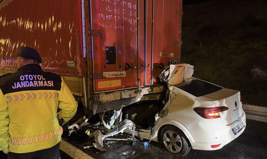 Ankara istikametinde ilerleyen Hasan Kaçar (29) yönetimindeki 34 GAT 515 plakalı otomobil, Tuzla Akfırat mevkiinde yağış nedeniyle kayganlaşan yolda kontrolünü kaybederek emniyet şeridinde park halindeki Ahmet Yiğit idaresindeki 18 ADD 197 plakalı tıra arkadan çarptı.