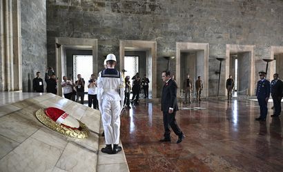 Ezer ve yönetim kurulu üyeleri, daha sonra Misak-ı Milli Kulesi'ne geçti. Burada, Anıtkabir Özel Defteri'ni imzalayan Üstün Ezer, anlamlı bir hatıra bıraktı.