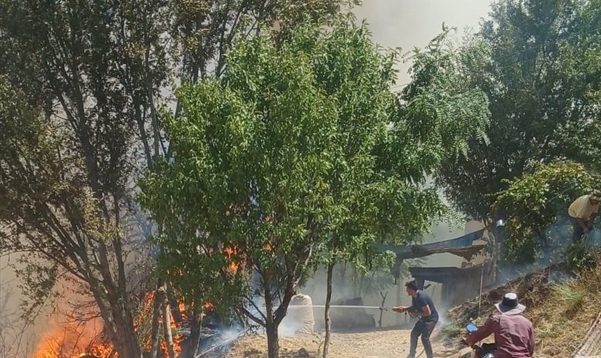 Yangına, bölgedeki altyapı çalışmaları için hazır bekleyen 8 itfaiye aracı ve Büyükşehir Belediyesi'ne ait iş makineleriyle müdahale ediliyor. Ancak, henüz kontrol altına alınamayan yangın sonucu bir evde hasar meydana geldi.