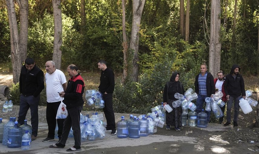 Mamak'ta bulunan Dostlar Mahallesi'ndeki doğal kaynak suyu çeşmesine akın eden vatandaşlar, evlerine içme suyu taşıyabilmek için uzun kuyruklar oluşturuyor. Su bulma mücadelesi veren mahalle sakinlerinden Sami Özer durumu ağır sözlerle ifade etti: