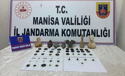 Manisa'nın Akhisar ilçesinde gerçekleştirilen bir ev baskınında toplam 54 parça tarihi eser ele geçirildi.