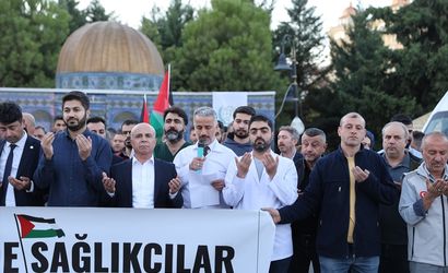 Ökmen, sağlık çalışanlarının mesleklerini icra edebilmek için verdikleri mücadele ve Gazze'deki sağlık kuruluşlarının durumuna dikkat çekerek, "Tedavi hakları insanların ellerinden alınmıştır. Yetersiz sağlık hizmeti nedeniyle birçok çocuk hayatını kaybetmiştir, biz buna karşı duruyoruz," şeklinde konuştu.