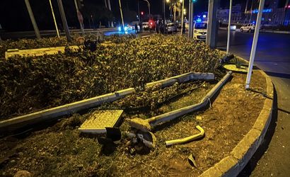 Mersin'in merkez Toroslar ilçesinde kavşaktaki direklere ve refüje çarpan seyir halindeki otomobilin sürücüsü yaralandı.