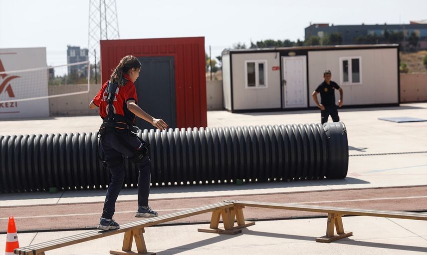 Mersin'de görev yapan kadın itfaiyeciler, olası afetlere hızlı ve etkin şekilde müdahalede bulunmak için zorlu parkurlarda hazırlık yapıyor.