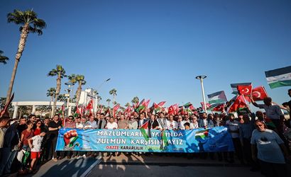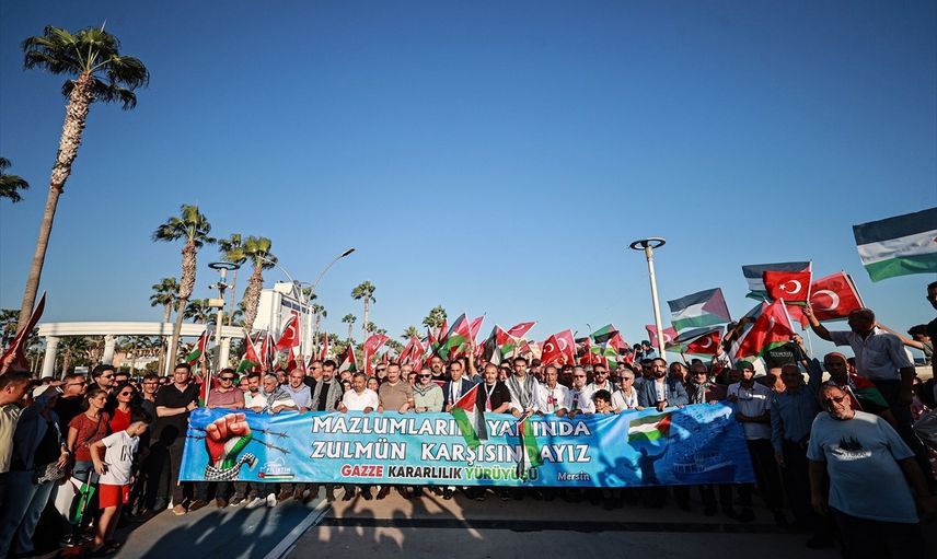 Mersin'de, İsrail'in Gazze'de devam eden soykırımı ve Küresel Sumud Filosu'na yönelik saldırıları protesto edildi. Toplanan kalabalık, ellerinde Filistin bayrakları ve dövizlerle İsrail aleyhine sloganlar atarak yürüyüş yaptı.