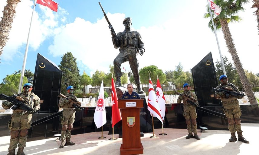 Milli Savunma Bakanlığı (MSB) Basın ve Halkla İlişkiler Müşaviri ve Bakanlık Sözcüsü Tuğamiral Zeki Aktürk, 20 Temmuz 1974'te gerçekleştirilen Kıbrıs Barış Harekatı'nda vatan ve millet uğruna şehit olan kahraman Mehmetçiğin ve mücahitlerin yan yana yattığı Kuzey Kıbrıs Türk Cumhuriyeti'nde bulunan Boğazköy Şehitliği'nde düzenlenen haftalık basın bilgilendirme toplantısında konuştu.