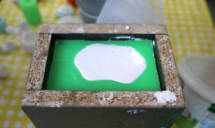Usta öğretici Aysun Özbay eşliğinde eğitim alan öğrenciler, 1071’de Türklere Anadolu’nun kapılarını açan Sultan Alparslan’ın zırhı ve atını temsilen hediyelik ürünler üretmeye başladı. Üretim aşamasında taş tozu, harç haline getirilip kalıplara dökülüyor; ardından güneşte kurutuluyor.