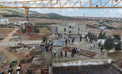 Gaziantep'in Nurdağı ilçesinde, rezerv alanında yapımı süren konut projesinin son kalıbı, davul zurna eşliğinde yerine konuldu.