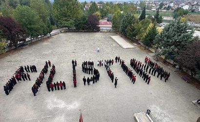 Osmaneli ilçesinde, 75. Yıl Anadolu Lisesi’nde bir araya gelen 100 öğrenci, Gazze'ye insani yardım gönderen ve İsrail'in saldırısına maruz kalan Küresel Sumud Filosu’na destek vermek amacıyla özel bir koreografi sergiledi.