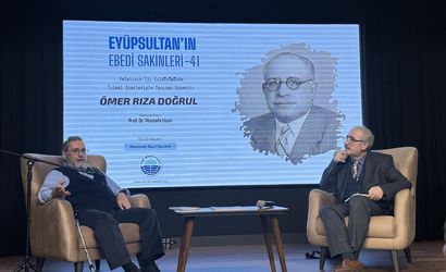 Siyasetçi ve yazar Ömer Rıza Doğrul, vefatının 73. yılına özel hazırlanan programla Yeni Dünya Vakfı'nda yad edildi. Gazeteci yazar Mehmet Nuri Yardım'ın (sağda) yönettiği etkinlikte, Prof. Dr. Mustafa Uzun (solda) konuşmacı olarak yer aldı.