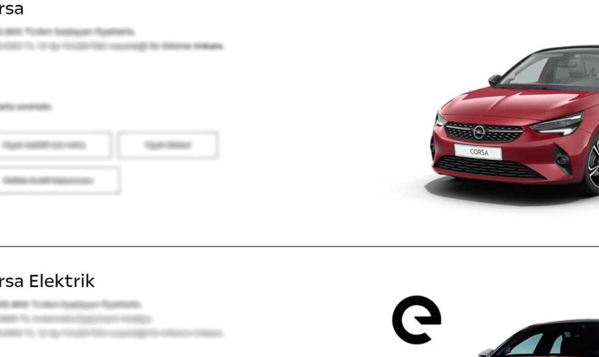 OPEL'in diğer modellerinin fiyatları ise şu şekilde: