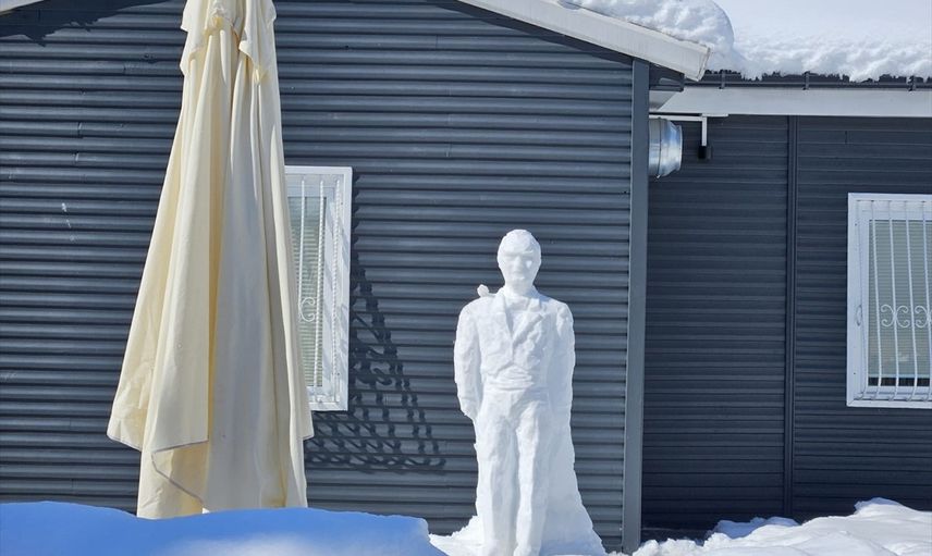 Ordu'nun Altınordu ilçesinde kardan Atatürk heykeli yapıldı.