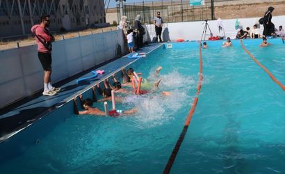 Yozgat'ın Sorgun ilçesinde, Gençlik ve Spor Bakanlığı tarafından hayata geçirilen bir proje çerçevesinde kurulan portatif havuzda özel çocuklar, arkadaşlarıyla bir araya gelerek yüzme eğitimi alıyor.