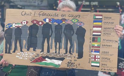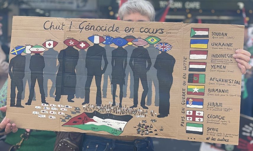 Gösteriye katılanlar arasında, Temmuz ayında insani yardım göndermek için yola çıkan ancak İsrail tarafından durdurulan Hanzala gemisindeki isimlerden biri olan Boyun Eğmeyen Fransa (LFI) Partisi Milletvekili Gabrielle Cathala da bulunuyordu.