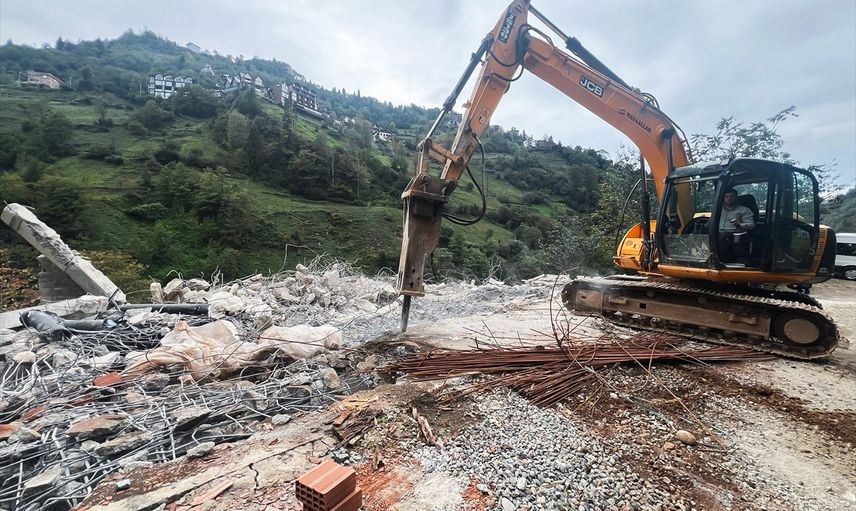 Rize, Fırtına Vadisi'nde, izinsiz olarak inşa edilmiş ve taşkın riski taşıyan yapıların yıkımına hızla devam edilmektedir.