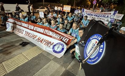 Açıklamanın ardından Sağlık-Sen üyeleri, Bakanlık binası önünde 112 dakika süren bir oturma eylemi gerçekleştirdi.