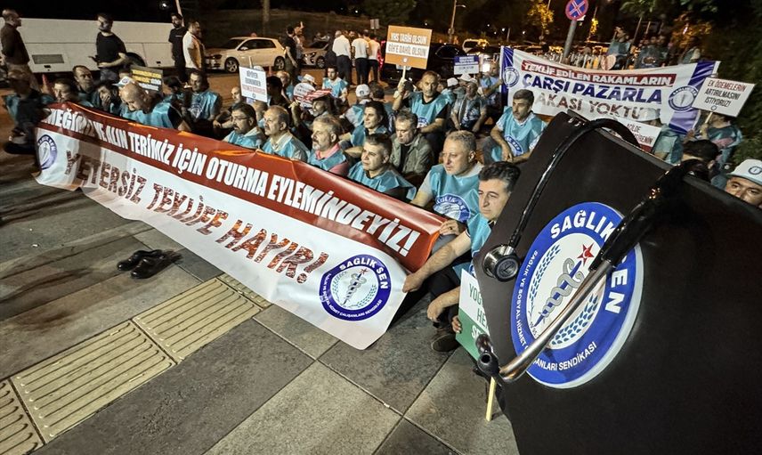 Sağlık-Sen üyeleri, 8. Dönem Kamu Toplu Sözleşme görüşmeleri çerçevesinde Kamu İşveren Heyeti'nin sunduğu zam teklifini yetersiz buldu ve 112 dakikalık oturma eylemi gerçekleştirdi.