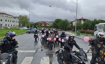 Sakarya'nın Serdivan ilçesinde, motosiklet tutkunları, meme kanseri farkındalık ayı etkinlikleri kapsamında bir araya gelerek bir tur gerçekleştirdi. Serdivan İlçe Sağlık Müdürlüğü öncülüğünde düzenlenen etkinlikte, kadın ve erkek sürücüler motosikletlerine bağladıkları pembe balonlarla kentin cadde ve sokaklarında tur attı.