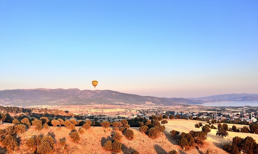Burdur'un Yeşilova ilçesinde Salda Gölü manzaralı sıcak hava balon turizmi devam ediyor. Turkuaz rengi suyu ve beyaz kumsalının güzelliğiyle ünlenen Salda Gölü yakınındaki Kayadibi Mahallesi'nden havalanan sıcak hava balonları gökyüzünü süslüyor.