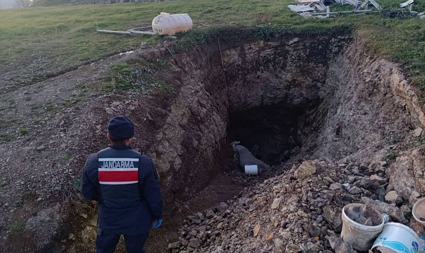 Atakum İlçe Jandarma Komutanlığı ekipleri, suç ve suçlulukla mücadele kapsamında düzenledikleri devriye sırasında bir bağ evinin bahçesinde kazılmış bir çukur fark etti.