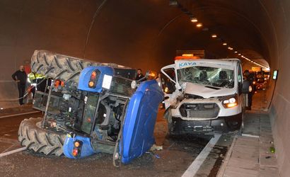 Kaza sonucunda traktör ile römork tünel içerisinde devrildi. Olay yerine sağlık, itfaiye, polis ve jandarma ekipleri hızla sevk edildi. Yaralanan sürücüler, hastaneye kaldırılmak üzere sağlık ekiplerince gerekli işlemler yapıldı.