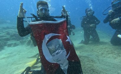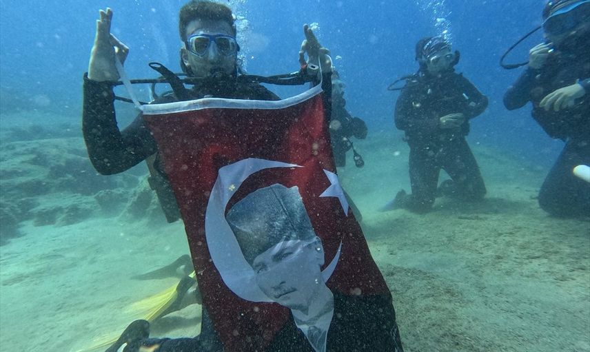 Samsun'un Bafra ilçesinden gelen sualtı sporcuları, 19 Mayıs Atatürk'ü Anma, Gençlik ve Spor Bayramı dolayısıyla Antalya'nın Kaş ilçesinde denizin derinliklerinde Türk bayrağını açtı.