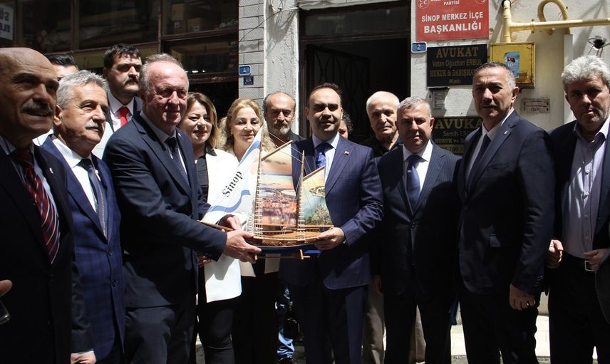 Daha sonra MHP Sinop İl Başkanlığına geçerek İl Başkanı Hikmet Çınar ve partililerle bir araya gelen Kacır'a burada kente özgü bir korta hediye edildi.