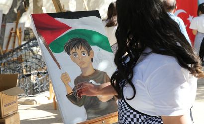 Şanlıurfa'da Elbirliği Derneği öncülüğünde ve ressam İlhami Atalay'ın katılımıyla İsrail'in Gazze'deki saldırılarına dikkat çekmek amacıyla Tarihi Balıklıgöl yerleşkesindeki Hasan Paşa Camisi avlusunda "Zulmü fırçala" etkinliği düzenlendi.