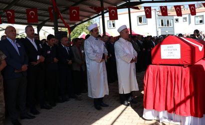 Tokat 48. Piyade Er Eğitim Alayı'nda eğitim sırasında rahatsızlanarak şehit olan Piyade Er Eyüp Güner, memleketi Gaziantep'te toprağa verildi. Şehit Güner için Salkım Mahalle Camisi'nde öğle namazına müteakip tören düzenlendi. Törende AK Parti Grup Başkanvekili Abdulhamit Gül (sol2) ve CHP Milletvekili Melih Meriç (sol) de hazır bulundu.