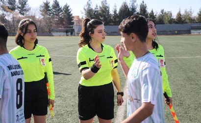 Siirt'te amatör ligde maç yöneten üç genç kadın hakem, Süper Lig ve uluslararası organizasyonlarda görev almak için azimle çalışıyor. 21 yaşındaki Nur Hayat Polat (ortada), 18 yaşındaki Sevgi Acar (sağ) ve Zeliha Çiğdem Kurhan (sol), futbol hakemliği kariyerlerinde büyük başarılar elde etmek için disiplinli bir şekilde çalışmalarını sürdürüyor.