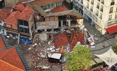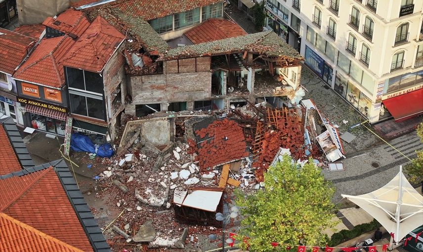 Havanın aydınlanmasıyla birlikte, deprem nedeniyle oluşan hasar Anadolu Ajansı ekipleri tarafından dronla görüntülendi. Cumhuriyet Meydanı çevresinde bulunan iki bina tamamen yıkılırken, bir araç da molozların altında kaldı.