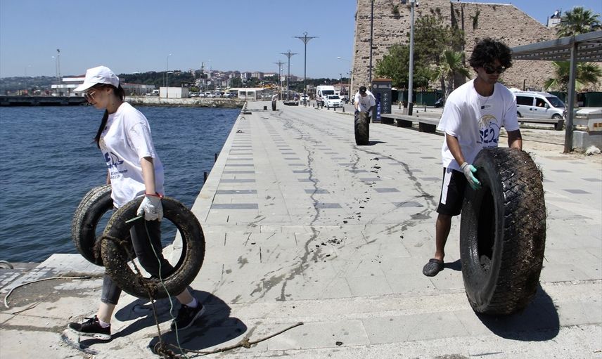 Sinop'ta 16 dalgıcın katılımıyla gerçekleştirilen deniz dibi temizliğinde su altında perde kornişi, merdiven ve kamyon lastiği gibi atıklara rastlandı.