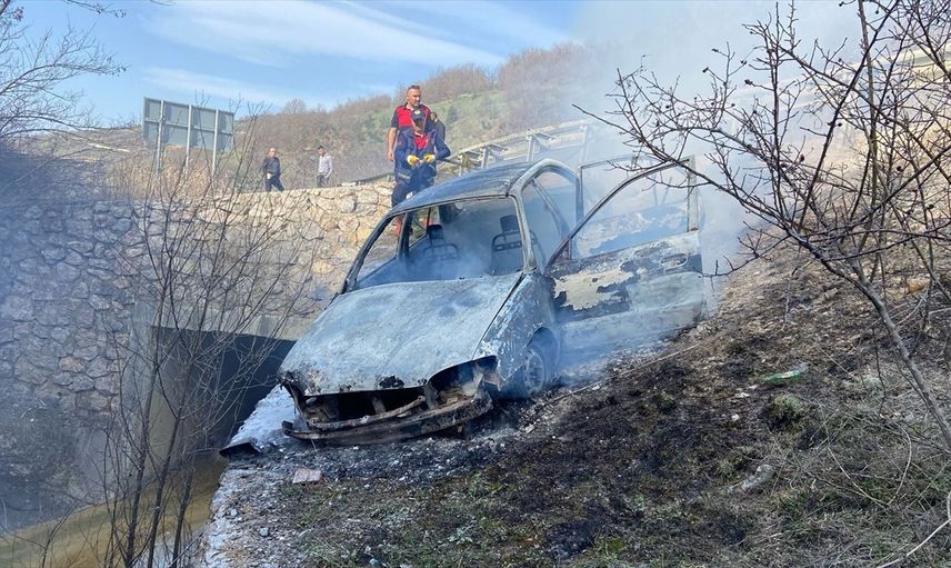 Kazanın ardından otomobilde çıkan yangın, olay yerine gelen itfaiye ekipleri tarafından kontrol altına alınarak söndürüldü.