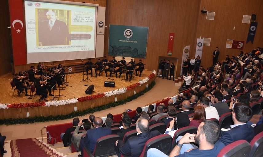 Şırnak Üniversitesi'nde 2025-2026 akademik yılı açılış töreni, üniversite kampüsünde bulunan 15 Temmuz Kongre ve Kültür Merkezi Salonu'nda gerçekleştirildi. Tören, saygı duruşu ve İstiklal Marşı'nın okunmasıyla başladı.