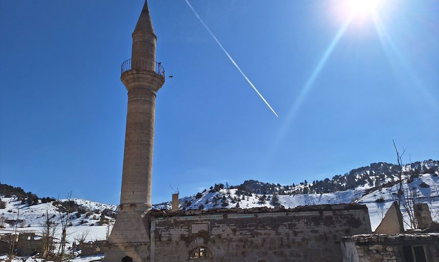 Sivas'ın Hafik ilçesinde, Pusat-Özen Barajı altında kalan eski yerleşim alanı, su seviyesinin düşmesiyle birlikte 16 yıl sonra tamamen görünür hale geldi.
