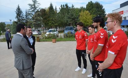 Türkiye Cimnastik Federasyonu Başkanı Suat Çelen (sol 2), Endonezya'da düzenlenecek 53. Artistik Cimnastik Dünya Şampiyonası için Bolu'da kamp yapan milli sporcuları ziyaret etti.