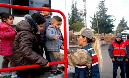 Reyhanlı ilçesindeki Cilvegözü Sınır Kapısı'na yönelen Suriyeliler, güvenlik güçlerinin düzen sağladığı bariyer koridorlarında sıralarını bekliyor. Özellikle kadın ve çocuklara öncelik tanınırken, Sınır Kapısı'nda görev yapan jandarma ekipleri, çocuklara özel bir ilgi gösteriyor.