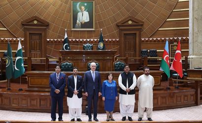 TBMM Başkanı Numan Kurtulmuş (sol 3), "Azerbaycan, Pakistan ve Türkiye Üçlü Parlamento Başkanları Toplantısı” dolayısıyla bulunduğu Pakistan’ın Lahor kentinde, Pencap Eyalet Meclisi'ni, Azerbaycan Milli Meclisi Başkanı Sahiba Gafarova (sağ 3) ile ziyaret etti. Pencap Eyalet Meclisi Başkanı Malik Muhammed Ahmed Khan (sağ 2), ziyarette ev sahipliği yaptı.