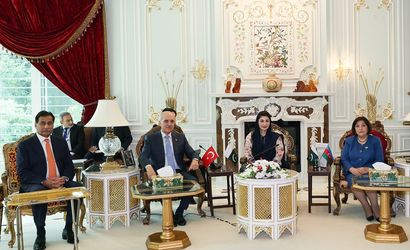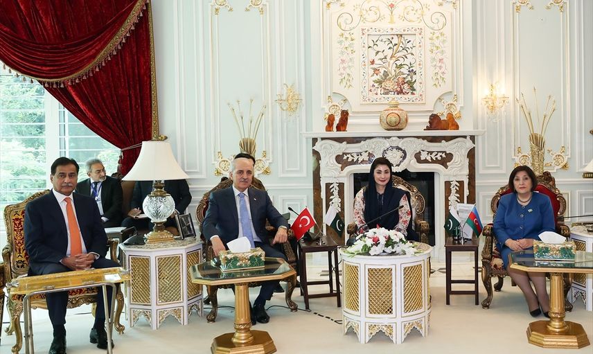 TBMM Başkanı Numan Kurtulmuş, Pakistan'ın Pencap Eyaleti Başbakanı Meryem Navaz Şerif (sağ 2) ile görüştü. Ziyarette, Pakistan Ulusal Meclisi Başkanı Serdar Ayaz Sadık (solda) ve Azerbaycan Milli Meclisi Başkanı Sahiba Gafarova (sağda) da yer aldı.