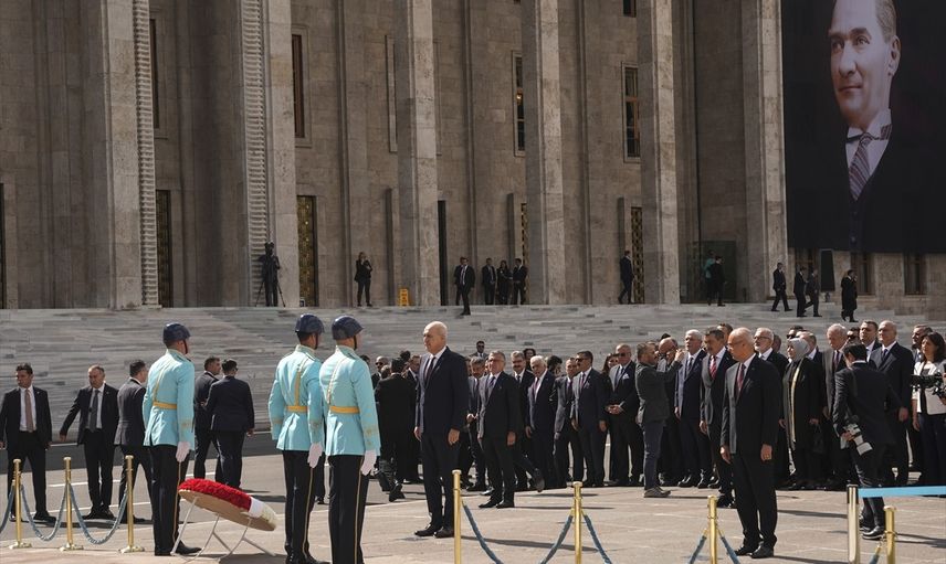 TBMM Başkanı Numan Kurtulmuş, anıta çelenk bıraktıktan sonra bando eşliğinde saygı duruşunda bulunuldu ve ardından İstiklal Marşı okundu.