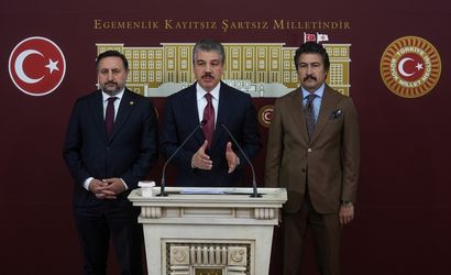 TBMM Adalet Komisyonu Başkanı ve AK Parti İstanbul Milletvekili Cüneyt Yüksel (ortada), Güney Afrika'nın, İsrail aleyhine UAD'de açtığı "soykırım davasını" takip eden TBMM Hukuk Heyetindeki Avrupa Birliği Karma Parlamento Komisyonu Eş Başkanı ve AK Parti İstanbul Milletvekili İsmail Emrah Karayel (solda), Anayasa Komisyonu Üyesi ve AK Parti Denizli Milletvekili Cahit Özkan (sağda) ile TBMM'de basın toplantısı düzenledi.