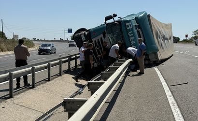 Tekirdağ'da devrilen tırın şoförü hastaneye kaldırıldı.